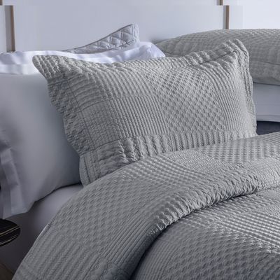 1- Colcha 2,60 x 2,70m 2- Porta-travesseiros 50x70cm King Size 1- Colcha 2,90 x 2,70m 2- Porta-travesseiros 50x70cm Super King 1- Colcha 3,20 x 2,70m 2- Porta-travesseiros 50x90cm Tecido 20% Linho - 80% Algodão Detalhes - Colcha jacquard em ponto favo estilizado, barra em debrum mini favo e cantos retos; - Porta-travesseiro em jacquard em ponto favo estilizado com borda em debrum de mini favo, 4 abas e com zíper - Pré-encolhido e antipilling - Lavagem Stone Wash Marca Naturalle |